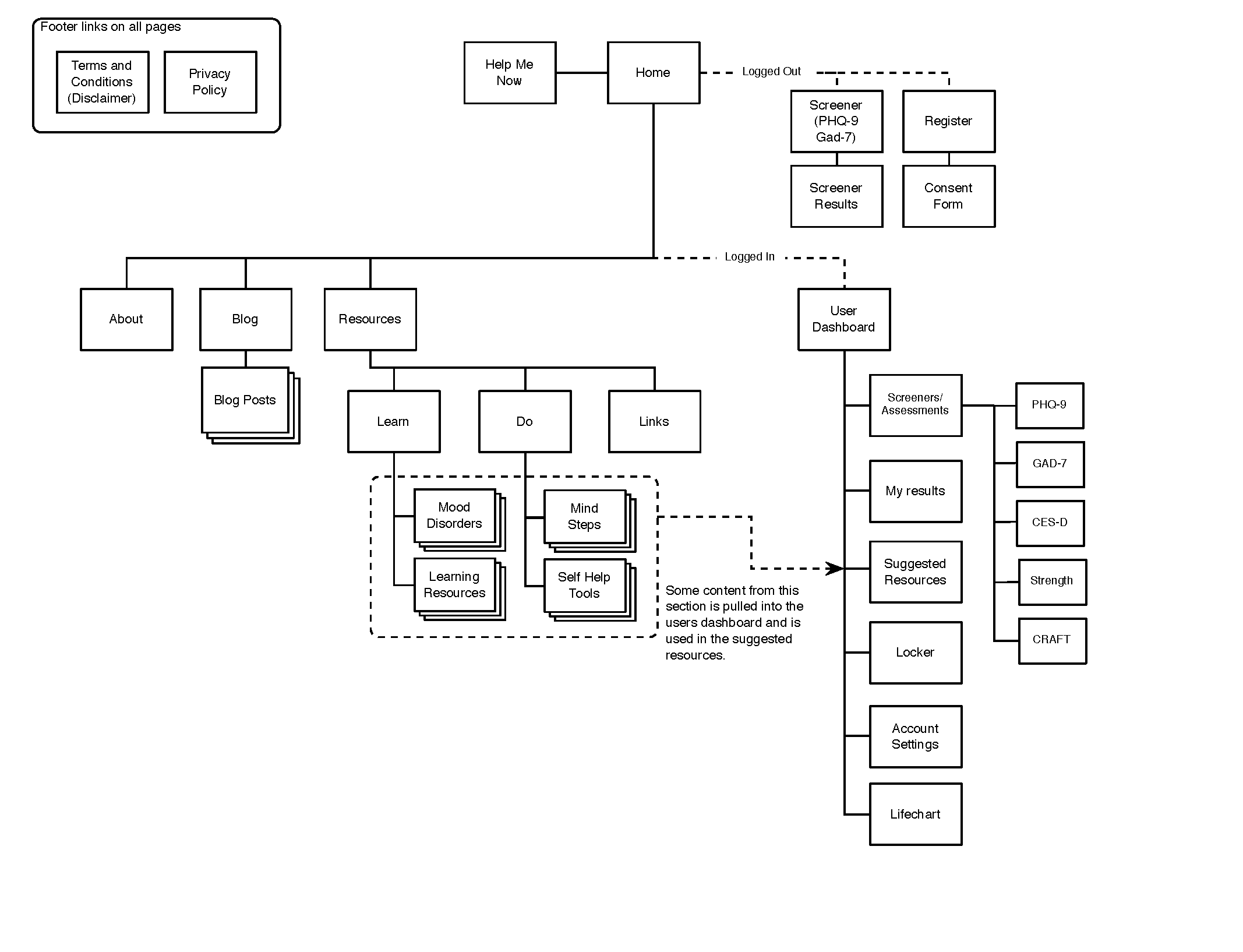 One thing we’ve learned about website development through this project is that it is NEVER a linear path, and there are always great ideas flying all over the place. Often it has been referred to as a “moving target”, which sums it up nicely. There is obviously content that was easy for the researchers to identify from the beginning – things like mood screeners, existing information, available on-the-ground resources, and existing self-help tools. The group had a pretty solid idea of what they wanted to put into the website, so the next logical step was to build a sitemap and build a vision statement to organize the content and to begin the elements of building the brand.