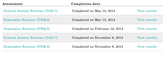 Have you wanted to track your progress as you journey towards better mental health? Now you can. Registered users are now able to view their past assessments to see their progress over time. Just click Assessments >> View your previous assessment results.
