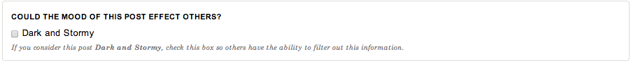 You can also tag your own posts as Dark and Stormy when you upload new content in your Locker.