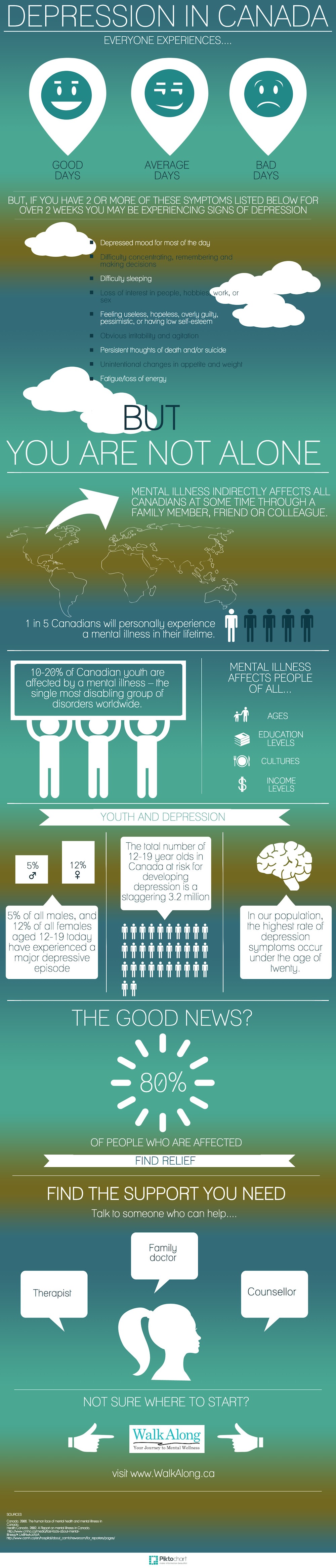 Depression is one of the world’s leading causes of disability, and is more common in women and the divorced or separated. 10% of Canadians will experience major depressive disorder at some point in their life, and the disorder will be chronic in approximately 12% of the cases.